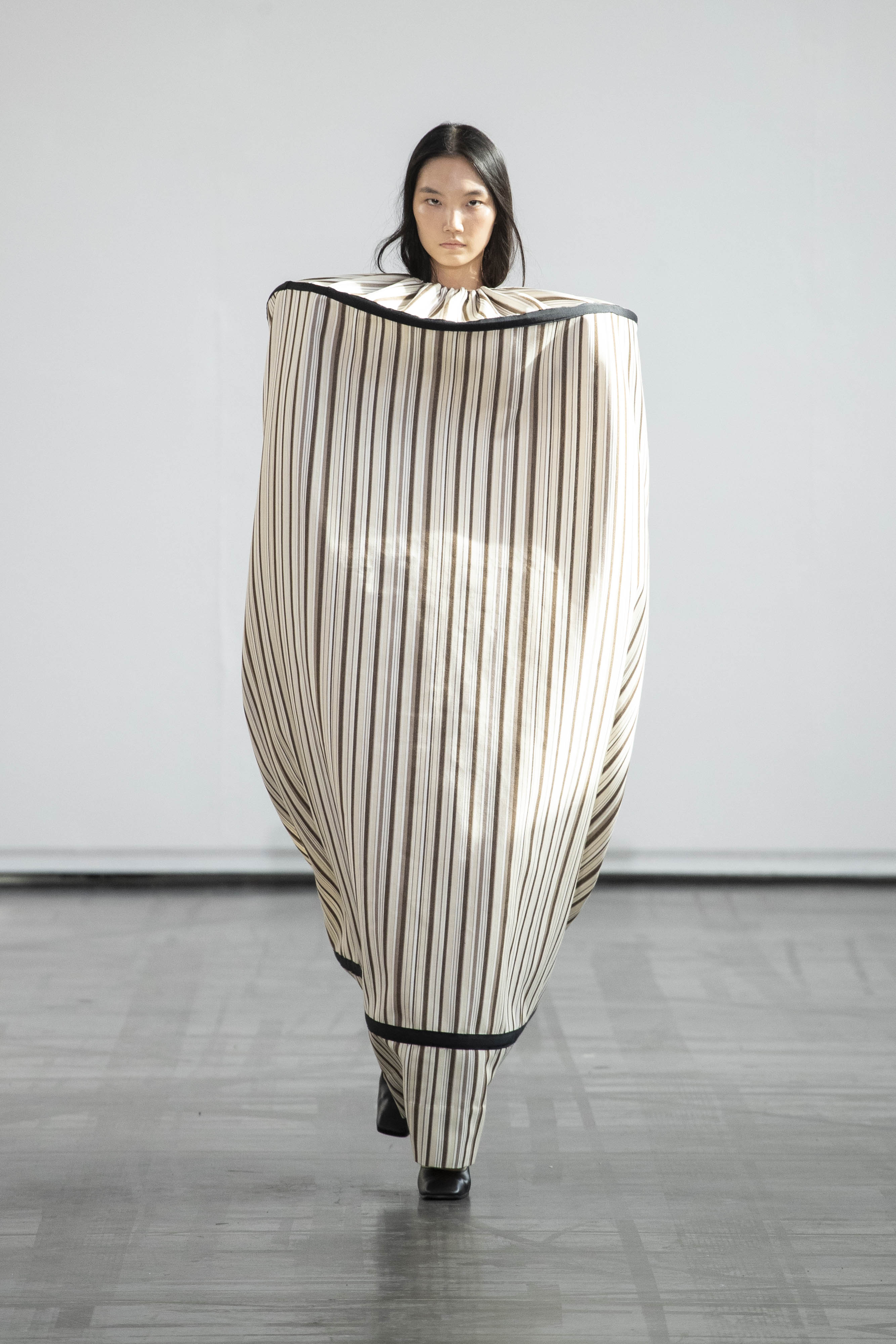 In the same spirit, the garments multiply their uses, with systems of ties, fastenings and buttonholes. They can be worn as desired, far away or close to the body, and we appropriate them to create our own personal wardrobe, our own collection.